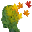 • symbolischer Kopf aus Blättern, die mehr wegfliegen
